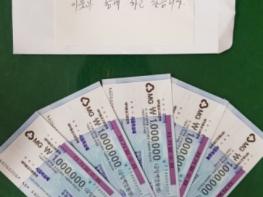 익명의 독지가가 주신 편지봉투에는 “작은 물질이지만 지역 어려운 이웃과 함께 하고 싶습니다.”라고 쓰여 진 편지와 수표 백만원권 5장이 들어있었다.