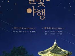[한국뉴스타임=편집국] 문화재청 궁능유적본부(본부장 정성조)는 한국문화재재단(이사장 최영창)과 함께'2023 경복궁 별빛야행' 상반기 행사를 4월 15일부터 5월 13일까지 20일간 하루 2회씩 진행하기로 하고, 오는 7일 오후 2시부터 온라인 입장권 예매를 시작한다.