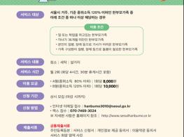 가사서비스는 서울시 거주 한부모가족 중 2020년 기준 중위소득 120% 이하(3인 기준 4,645천원 이하) 가 대상이며, 월 2회, 1회당 4시간씩 가사서비스를 ‘만원 이하’로 이용할 수 있다.