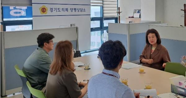 [한국뉴스타임=편집국] 경기도의회 박명숙 의원(국민의힘, 양평1)은 20일 양평상담소에서 양평교육지원청 관계자와 23년도 양평교육지원청 현안사업계획서 및 소규모 교육환경개선사업 수요현황에 대해 업무 보고를 받았다.