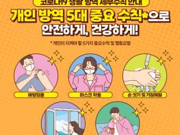 이에 남양주보건소는 적극적인 홍보활동에 나서 코로나19 감염 확산을 방지하기 위한 대책으로 △아프면 쉬기 △실내 주기적인 환기 △3밀(밀폐, 밀접, 밀집) 환경에서 마스크 착용 △손 씻기 △기침 예절 지키기 등 기본적인 개인 방역수칙을 준수하는 것이 가장 좋은 예방법이라고 강조했다.
