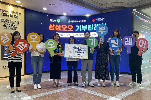 [한국뉴스타임=편집국] 남양주시는 4일 기부자 명예의 전당‘삼삼오오 기부릴레이’에 복지행정과 직원들이 참여했다고 밝혔다.