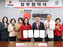 [한국뉴스타임=편집국] 경기도의회 국민의힘(대표의원 김정호)과 미주한인회총연합회sm(총회장 정명훈, 미주총련sm)가 26일 경기도의회 국민의힘 대표의원실에서 업무협약(MOU)을 체결했다.