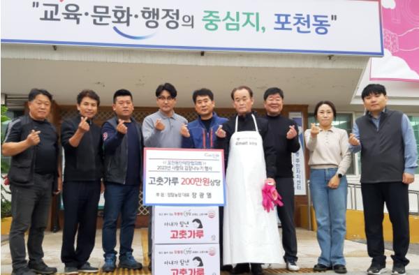 [한국뉴스타임=편집국] 포천시 포천동 행정복지센터는 1일 ‘사랑의 김장나누기 행사’를 맞아 포천동 소재 기업 ㈜정탑농산에서 포천동 단체장협의회에 고춧가루 200만 원 상당을 기부했다고 밝혔다.