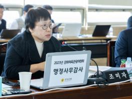 [한국뉴스타임=편집국] 경기도의회 문화체육관광위원회 조미자 의원(더불어민주당, 남양주3)은 21일 문화체육관광국 소관 종합 행정사무감사에서 경기도 북부·남부, 소외지역 어린이들의 문화예술 불균형에 대해 지적하고, 효율적 예산 계획수립과 집행 필요성을 주장했다.
