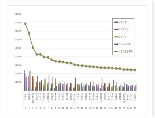 특히 대한민국 도시의 브랜드에 대한 11월 평판은 10월 22일부터 2023년 11월 22일까지의 도시 인지도 빅데이터 65,438,864개를 분석했다.