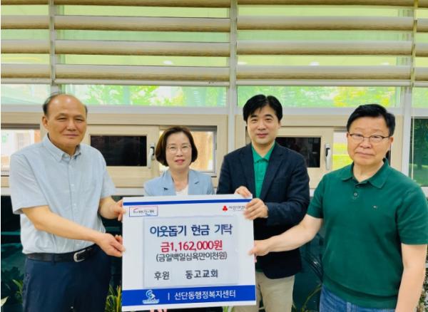 [한국뉴스타임=편집국] 선단동 행정복지센터는 지난 22일 선단동 소재 동고교회가 관내 복지사각지대 취약계층을 돕기 위해 교인들이 모은 이웃돕기 성금 약 1백1십만 원을 경기북부 사회복지공동모금회를 통해 기탁했다고 밝혔다.