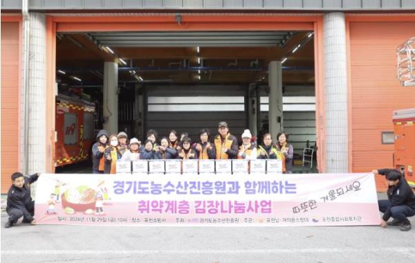 [한국뉴스타임=편집국] 포천여성의용소방대와 포천시종합사회복지관은 지난 11월 29일 포천소방서에서 김장 나눔 전달식을 진행했다.
