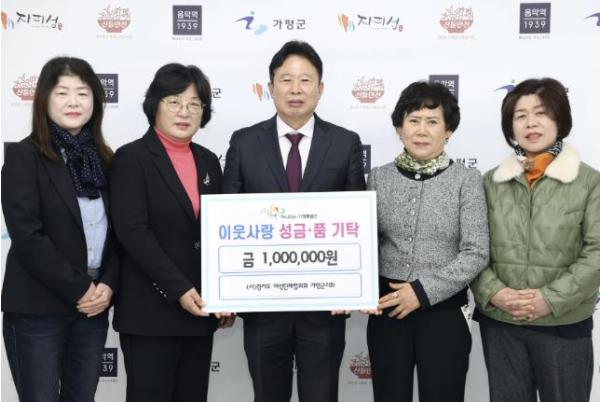 (사)경기도여성단체협의회 가평군지회는 3일 가평군을 방문해 이웃돕기 성금 100만원을 기탁했다.