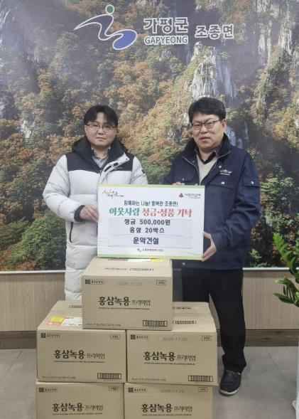 [한국뉴스타임=편집국] 가평군에 소재하는 운악건설은 23일 설 명절을 맞아 조종면행정복지센터를 방문해 성금 50만 원과 홍삼 20박스를 기탁했다.