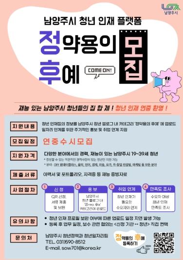 지원 자격은 남양주시에 거주하는 만 19세에서 39세까지의 청년으로, 다양한 분야에서 경력과 재능을 보유한 사람이라면 누구나 참여할 수 있다.