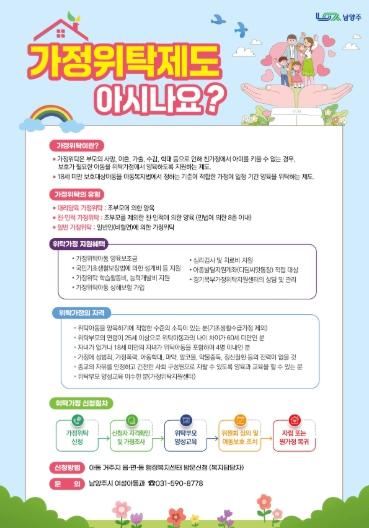 [한국뉴스타임=편집국] 남양주시는 보호가 필요한 아동들이 가정에서 안전하게 성장할 수 있도록 돕는 ‘가정위탁제도’의 인식을 확산하기 위해 홍보 포스터를 제작해 배포한다고 11일 밝혔다.