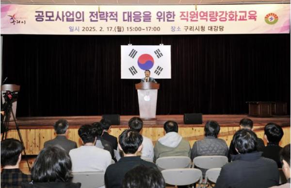 [한국뉴스타임=편집국] 구리시는 지난 17일 시청 대강당에서 시청 직원과 공사 ‧ 재단 직원 등 300여 명을 대상으로 공모사업에 전략적으로 대응하기 위한 직원 역량 강화 교육을 실시했다.