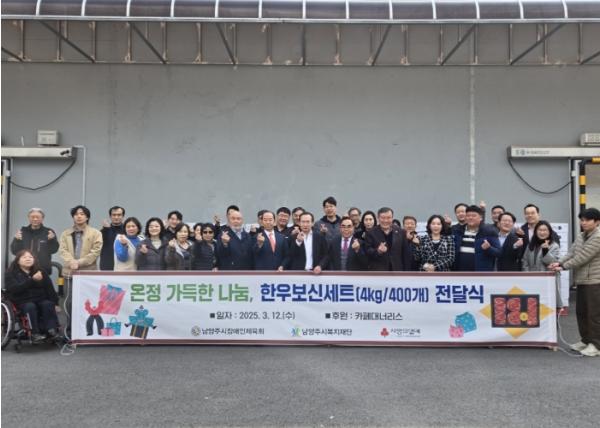 [한국뉴스타임=편집국] 남양주시장애인체육회는 12일 카페 대너리스(대표 윤범선)로부터 한우 보신 세트 400박스를 후원받아 장애인 단체 및 복지시설에 전달하는 나눔 전달식을 진행했다.