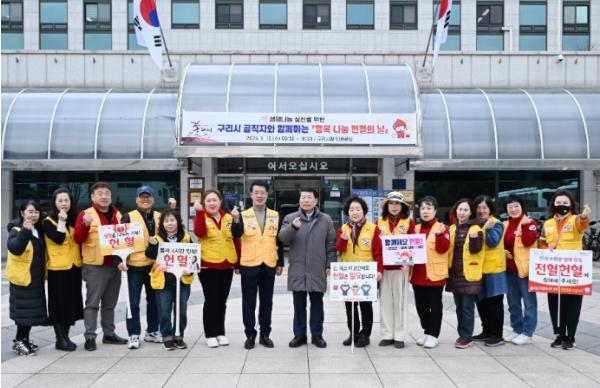 [한국뉴스타임=편집국] 구리시는 3월 12일 대한적십자사 서울동부혈액원과 상호 협력하여 관내 3개소(구리시청, 구리시체육관, 구리농수산물도매시장)에서 행복나눔 헌혈 행사를 실시했다.