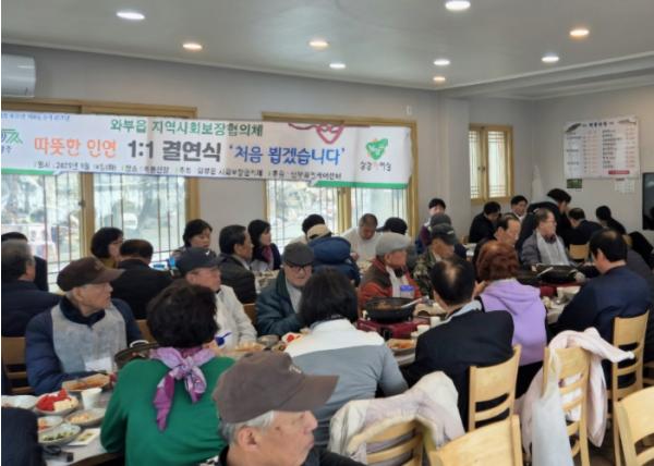 이번 행사는 독거 어르신의 사회적 고립과 고독사를 예방하고, 지역사회와의 정서적 유대감을 강화하기 위해 마련됐으며, △1:1 결연 사업 설명 △결연자 간 인사 △식사 대접 △선물 증정 및 기념 촬영 순으로 진행됐다.