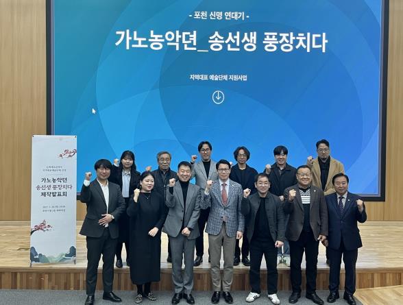 [한국뉴스타임=편집국] 포천아트밸리 가노예술단은 20일 포천시청 대회의실에서 국악극 '가노농악뎐_송선생 풍장치다'의 제작발표회를 개최했다.