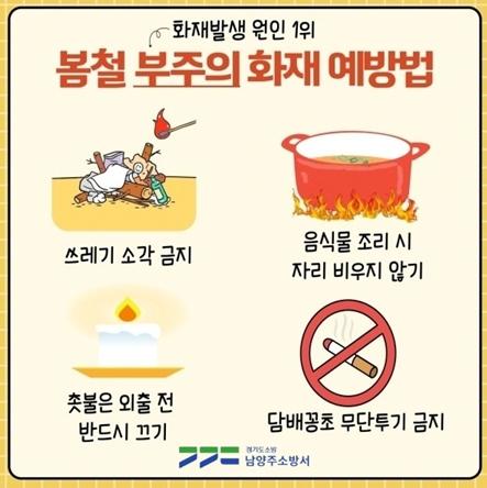 나윤호 남양주소방서장은 "계절 상 날씨가 건조하고 바람이 많이 부는 봄철에는 작은 부주의가 큰 화재로 이어질 수 있는 만큼, 시민들께서도 일상 속에서 화재 예방 수칙을 철저히 지켜주길 바란다"며 "앞으로도 화재 예방을 위한 홍보와 교육을 지속적으로 추진하겠다"고 말했다.