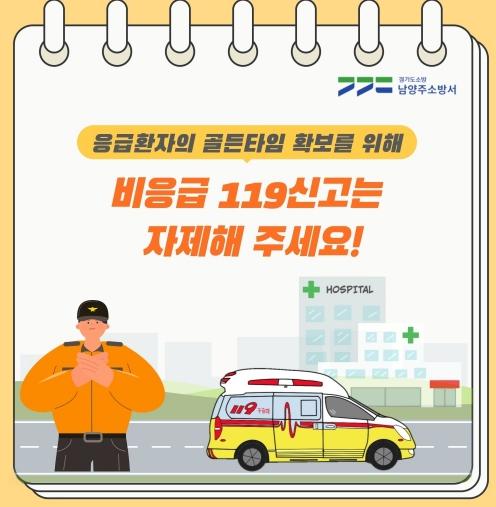 [한국뉴스타임=편집국] 남양주소방서는 응급환자의 골든타임 확보를 위해 시민들에게 비응급환자들의 119신고를 자제해 줄 것을 당부하고 있다.