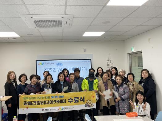 [한국뉴스타임=편집국] 구리시는 지난 18일 갈매동복합청사 3층 갈매건강생활지원센터 주민 참여실에서 ‘2025 건강리더 아카데미 2기 수료식 및 간담회’를 가졌다.