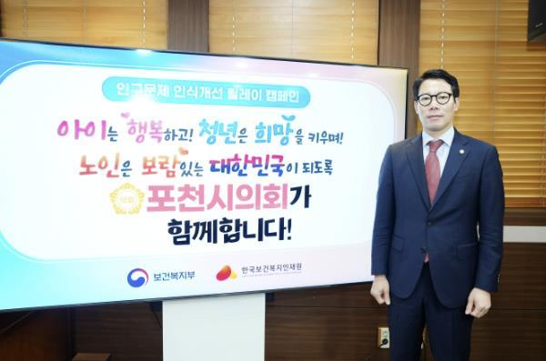[한국뉴스타임=편집국] 임종훈 포천시의회 의장은 과천시의회 하영주 의장의 지목을 받아, 인구감소의 심각성을 알리고 사회 전반의 인식 개선을 위한 ‘인구문제 인식개선 릴레이 캠페인’에 동참했다.