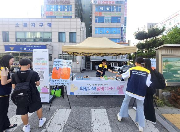 관계자들은 시민을 대상으로 자살 인식 개선과 기관 홍보를 위한 퀴즈, 상담 연계 방법 등이 담긴 홍보물을 배부하며, 자살 문제의 심각성과 자살예방센터의 역할을 알렸다.