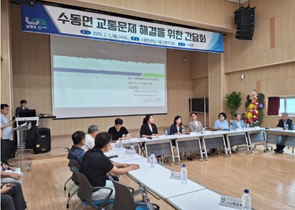[한국뉴스타임=편집국] 남양주시는 지난 7일 수동면 행정복지센터 3층 다목적 강당에서 '수동면 교통문제 해결을 위한 간담회'를 개최했다고 밝혔다.