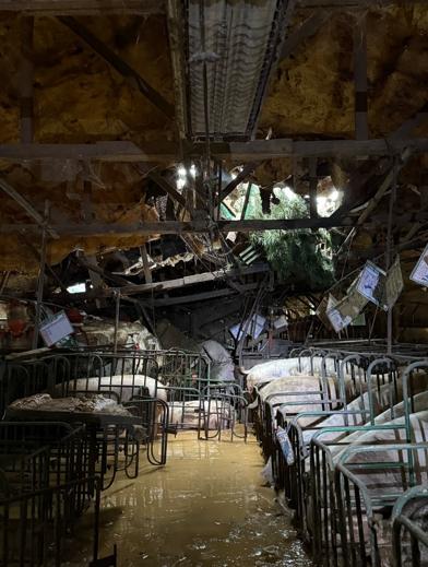 해당 농장은 모돈 240여 마리를 사육 중이며, 농장 인근에 위치한 로드리게스 사격장 도로 개설 공사장의 흙더미와 나무가 집중호우와 함께 돈사로 쏟아져 내려온 것으로 알려졌다. 이로 인해 축사가 심하게 훼손되고, 돈사 내부는 흙탕물과 오염물로 뒤덮여 심각한 피해를 입었다.