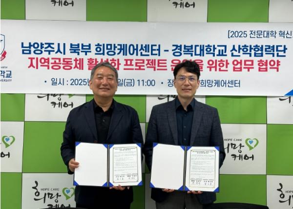 시는 이번 협약을 계기로 북부권 복지 거점인 북부희망케어센터가 경복대학교와 함께 지역사회 맞춤형 복지 프로그램을 개발하고, 지역사회 복지정책과 실천 간의 연계성을 높여 나갈 것으로 기대하고 있다.