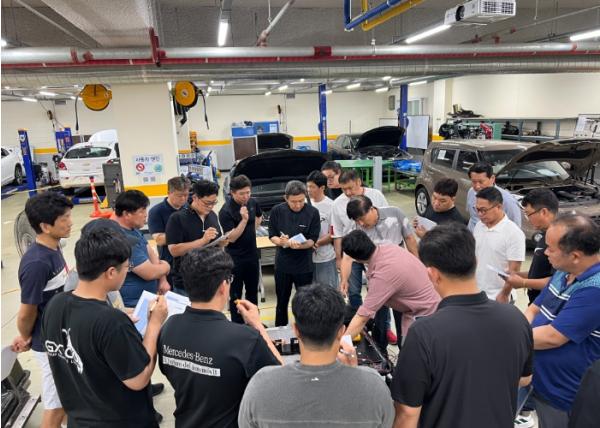 교육은 △전기차 고전압 안전 관리 △전기차 시스템 이해 △전기차 고장진단 및 수리 △최신 정비 사례 등 현장에서 실질적으로 도움이 되는 이론과 실습으로 구성됐다.
