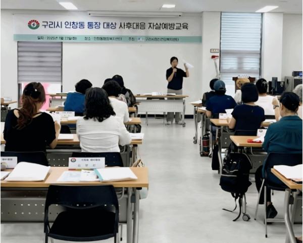 [한국뉴스타임=편집국] 구리시에서는 지난 7월 22일, 구리시 정신건강복지센터 부설 자살예방센터에서 인창동 행정복지센터 통장협의회를 대상으로 ‘자살 예방 교육’을 실시했다.