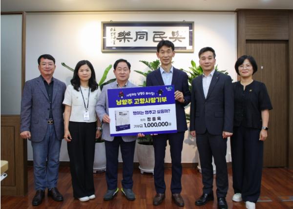 [한국뉴스타임=편집국] 남양주시는 22일 도서 ‘팽이는 멈추고 싶을까’의 저자 정종욱 작가가 고향사랑기부금 100만 원을 시에 전달했다고 밝혔다.