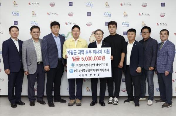 [한국뉴스타임=편집국] 의정부지방검찰청 남양주지청 (사)경기동부범죄피해자지원센터는 최근 가평군청을 방문해 수해로 피해를 입은 군민들을 위해 써달라며 성금 500만 원을 전달했다.