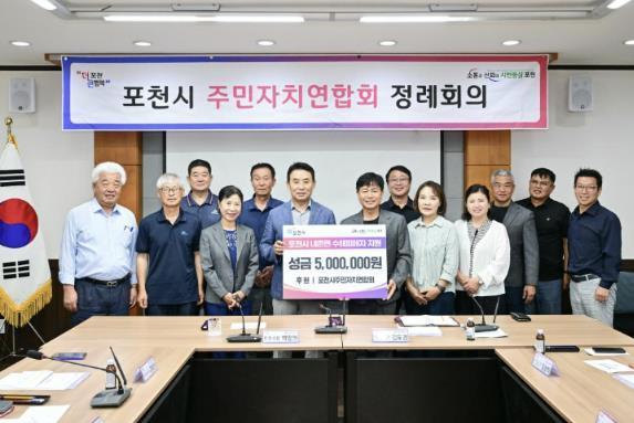 [한국뉴스타임=편집국] 포천시 주민자치연합회는 지난 6일, 집중호우로 피해를 입은 내촌면 수해 주민을 돕기 위해 성금 500만 원을 사회복지공동모금회에 기탁했다.