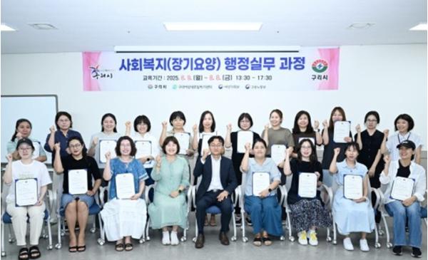 [한국뉴스타임=편집국] 구리시는 지난 8일 ‘사회복지(장기요양) 행정 실무 과정 직업교육훈련 수료식’을 개최하고, 총 20명의 교육생에게 수료증을 전달했다.