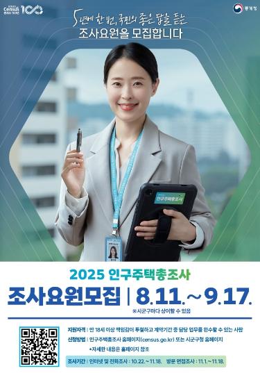 인구주택총조사는 5년 주기로 실시하는 통계조사로, 인구·가구·주택에 관한 종합적인 정보를 파악해 국가 주요 정책 수립을 위한 기초 자료로 활용된다.