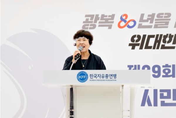 한국자유총연맹 남양주시지회에서 주관한 이날 행사는 광복절 제80주년을 맞이하여 광복의 의미를 되새기고, 시민들과 함께하는 화합의 장을 마련하기 위해 추진됐으며, 이정애 부의장을 비롯한 시의원, 주광덕 시장, 기관 단체장 및 도의원, 시민 등 1000여명이 참여했다.