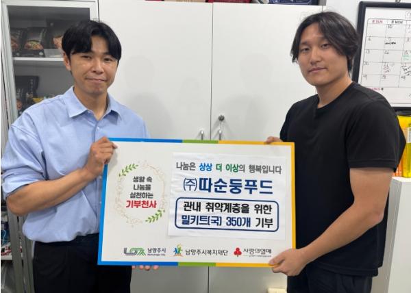 [한국뉴스타임=편집국] 남양주시는 16일 ㈜따순둥푸드(대표 신기수)가 취약계층을 위한 밀키트 350개를 남양주시복지재단에 전달했다고 밝혔다.