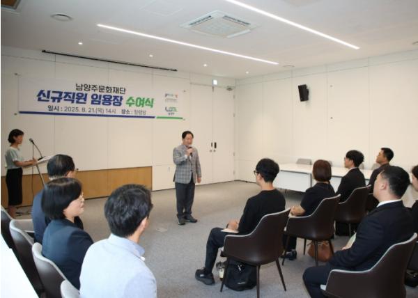 [한국뉴스타임=편집국] 남양주시는 21일 청렴방에서 남양주문화재단 신규 직원 11명에 대한 임용장 수여식을 개최했다.