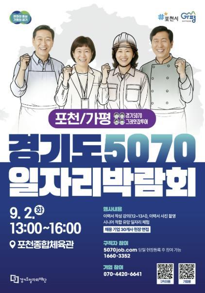 [한국뉴스타임=편집국] 포천시는 오는 9월 2일 포천종합체육관에서 50~70대 중장년층의 재취업을 지원하기 위한 ‘2025 경기도 5070 일자리박람회 in 포천+가평’이 열린다고 밝혔다.
