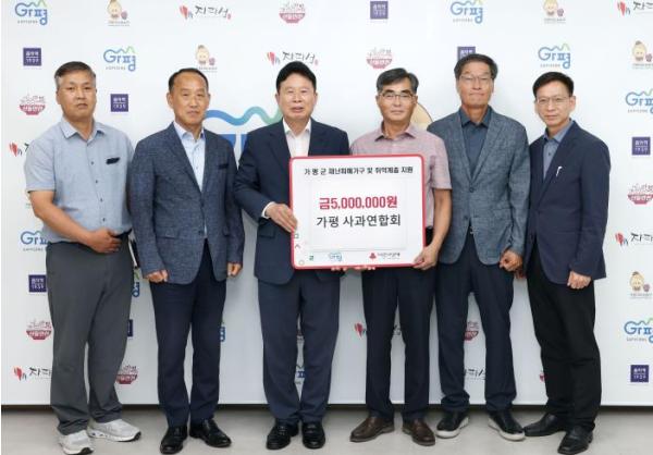 [한국뉴스타임=편집국] 가평군사과연합회는 21일 가평군청에서 서태원 군수와 농업기술센터 소장 등 관계자, 사과연합회 임원 등이 참석한 가운데 수해 이웃돕기 성금 500만원을 기탁했다.