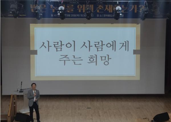 [한국뉴스타임=편집국] 남양주시는 지난 8월 28일 정약용도서관 공연장에서 박준영 재심 전문변호사를 초청해 인권교육 ‘법은 누구를 위해 존재하는가?’를 진행했다고 1일 밝혔다.