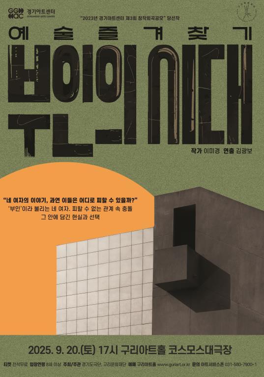 [한국뉴스타임=편집국] 구리문화재단은 오는 9월 20일 구리아트홀 코스모스 대극장에서 경기아트센터와 경기도극단의 ‘2025 예술즐겨찾기 '부인의 시대'’를 선보인다.