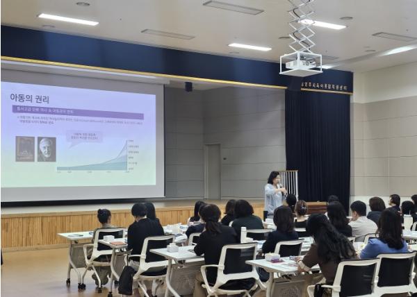 이번 교육은 교사들이 보육현장에서 아동의 권리가 존중되는 방안을 모색하고, 일상에서 권리존중 보육을 자연스럽게 실천할 수 있도록 돕기 위해 마련됐다.