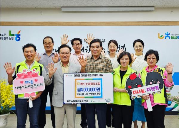한편, 화도농협은 동부희망케어센터와 지역사회보장협의체 등 관내 다양한 사회단체 지원을 비롯해 학생 장학금 기부, 이재민 구호 물품 후원 등 매년 약 1억 5천만원 규모의 기부를 통해 지속적인 사회공헌 활동으로 상생 가치를 실현하며 더불어 사는 문화 정착에 앞장서고 있다.