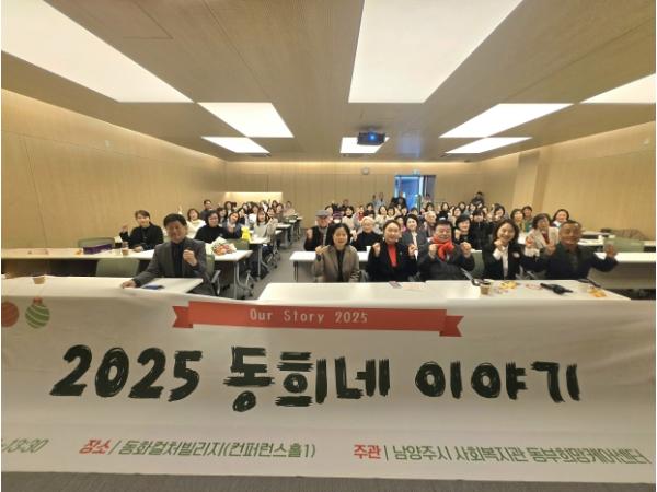 [한국뉴스타임=편집국] 남양주시는 지난 23일 남양주시 사회복지관 동부희망케어센터에서 한 해 동안 지역주민과 함께 실천해 온 복지 활동을 돌아보고 그 성과를 공유하는 2025년 성과공유회 ‘동희네 이야기’를 개최했다고 밝혔다.