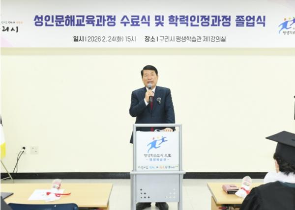 [한국뉴스타임=편집국] 구리시는 2월 24일 구리시평생학습관에서 ‘2025년 성인 문해 교육 과정 수료식 및 학력인정과정 졸업식’을 개최했다.