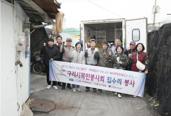 [한국뉴스타임=편집국] 구리시 수택3동 행정복지센터는 지난 4월 11일 목민봉사회와 연계해 주거환경이 열악한 취약계층 가구를 대상으로 집수리 봉사활동을 실시했다고 밝혔다.