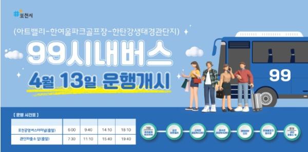 [한국뉴스타임=편집국] 포천시가 주요 관광지와 북부권 지역을 연결하는 관광특화 시내버스 신규 노선 99번을 신설하고 13일 본격 운행에 들어갔다.