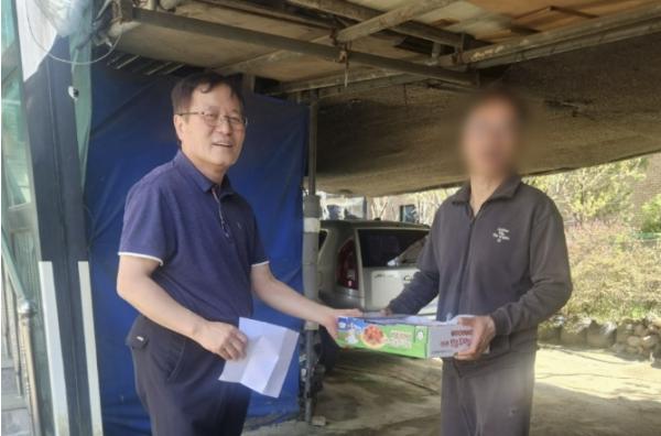 협의체 위원들은 각 가정을 직접 방문해 물품을 전달하고 안부를 확인했다.